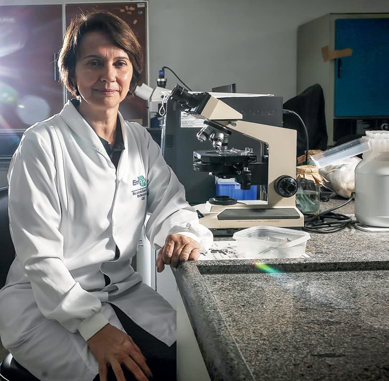 Ciente desse cenário, a Embrapa vem ministrando cursos, dando assistência técnica e, recentemente, finalizou um manual sobre o controle de qualidade e orientação para a produção on farm. Segundo a pesquisadora Rose Monerat, presidente do portfólio de controle biológico da Embrapa, a publicação nasceu a partir de um curso realizado no ano passado. “É um manual para produzir uma bactéria, a Bacillus thuringiensis, utilizada para matar lagartas. O mercado de biológicos cresce a taxas de 17% a 20% ao ano e queremos que ele se expanda mais e com qualidade”, afirma. Foi a resistência das lagartas aos agroquímicos que despertou a atenção dos produtores para novos insumos. “No início, a produção nas fazendas era bastante rudimentar, no entanto, o produtor começou a ver o valor do controle biológico”, diz Rose.